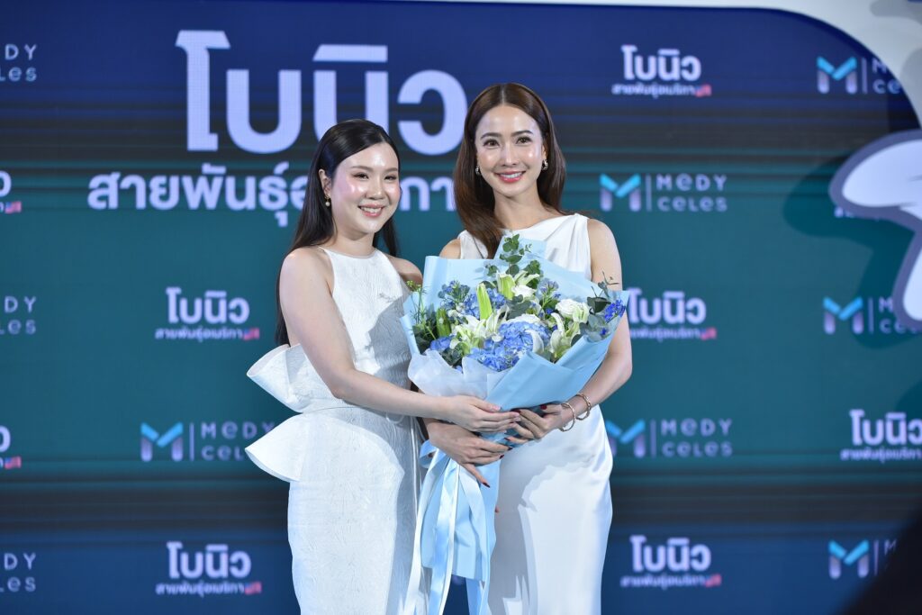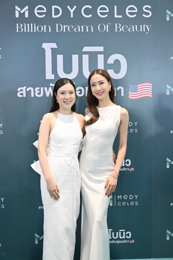 บรรยากาศงาน “Medyceles Billion Dream Of Beauty” เต็มไปด้วยความคึกคักจากบรรดาสื่อมวลชนและแฟนคลับไม่น้อย! เมื่อถึงไฮไลท์ที่สำคัญในงานที่หลายคนรอคอยนั่นก็คือการเผยโฉมปรากฏตัวของ 2 ซุปเปอร์สตาร์ชื่อดังแนวหน้าของเมืองไทยอย่างนางเอกสาว “แต้ว-ณฐพร เตมีรักษ์” และพระเอกหนุ่ม “นนกุล-ชานน สันตินธรกุล” ที่ได้รับหน้าที่พรีเซ็นเตอร์ ในแคมเปญ เปิดบริสุทธิ์หน้า ต้อง โบนิว สายพันธุ์อเมริกา ที่ครองใจผู้ใช้ภายใต้สโลแกน “ตึงไว ตึงนาน ไม่ดื้อโบ” ให้ผลลัพธ์ที่คุ้มค่าในราคาสบายกระเป๋า ที่ได้รับความไว้วางใจอย่างสูง จากคลินิกความงามทั่วประเทศ