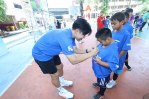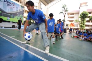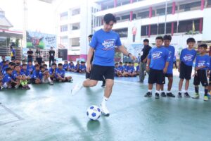 ”โค้ชอ้น” สอนศาสตร์ลูกหนังน้องๆ โครงการ ”ฟุตบอลปันสุข สนุกรอบสายทาง”