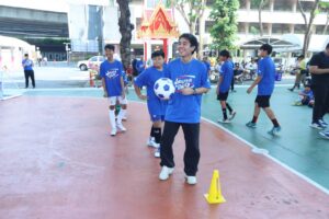 ‘โค้ชอ้น’ กุนซือหนุ่มดีกรี ‘โปร ไลเซนส์’ สอนศาสตร์ลูกหนังน้องๆ โครงการ ‘ฟุตบอลปันสุข สนุกรอบสายทาง’ จัดโดย BEM และ กทพ. ส่งต่อความสุขและรอยยิ้มสู่ชุมชน