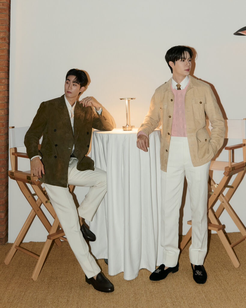 สำหรับสองหนุ่มตัวแทนของประเทศไทยที่เดินทางไปร่วมงาน “Ralph Lauren Spring 2025 Fashion Experience in Shanghai” อย่าง ซี – พฤกษ์ และ ฟอส – จิรัชพงศ์ ไม่ทำให้แฟนๆ ผิดหวัง ทั้งสองได้รับเสียงชื่นชมอย่างมากในเรื่องการแต่งกาย ซึ่งทั้งคู่เสิร์ฟลุคเท่สไตล์ “อเมริกัน เพรพพี” (American Preppy) อันเป็นสไตล์เอกลักษณ์ของ Ralph Lauren ที่คลาสสิกเหนือกาลเวลา โดย ซี – พฤกษ์ นำเสนอความอบอุ่นแต่ยังคงมีสไตล์ ด้วยการสวมเสื้อเชิ้ตอ็อกซ์ฟอร์ดสีขาวสุดคลาสสิก เติมรายละเอียดด้วยเนกไทลายตาราง เสริมลุคด้วยสเว็ตเตอร์ถัก (Cable-Knit) สีชมพูที่ดูนุ่มนวล ทับด้วยแจ็กเก็ตและเข็มขัดหนังกลับ แมตช์กับกางเกงเทเลอร์สีขาวคลาสสิก ปิดท้ายด้วยรองเท้า velvet loafer เสริมให้ลุคมีความหรูหรามากยิ่งขึ้น ขณะที่ ฟอส – จิรัชพงศ์ ดูดีไม่แพ้กันในลุคหนุ่มมาดเท่ มาพร้อมเสื้อเชิ้ตอ็อกซ์ฟอร์ดสีขาวเข้าคู่กางเกงขายาวทรงเทเลอร์ โดยมีไฮไลต์เป็นแจ็กเก็ตเบลเซอร์หนังกลับสีเขียวตุ่น พร้อมคอมพลีทลุคด้วยรองเท้าหนังโลฟเฟอร์สีดำ ที่ทำให้ลุคนี้ดูสมบูรณ์แบบมากยิ่งขึ้น