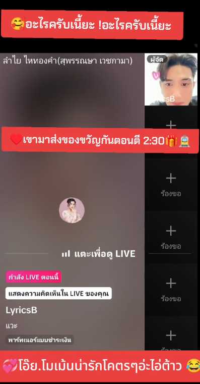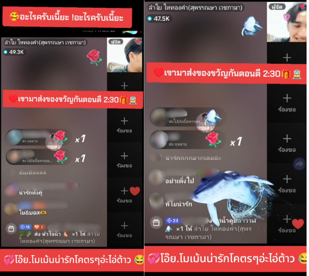 ทั้งคู่คุยกันอยู่สักพักก่อนที่ “ลำไย” จะออกจากไลฟ์สดไป งานนี้คนที่เข้าไปดูต่างเขินฟินจิกหมอนไปตาม ๆ กัน