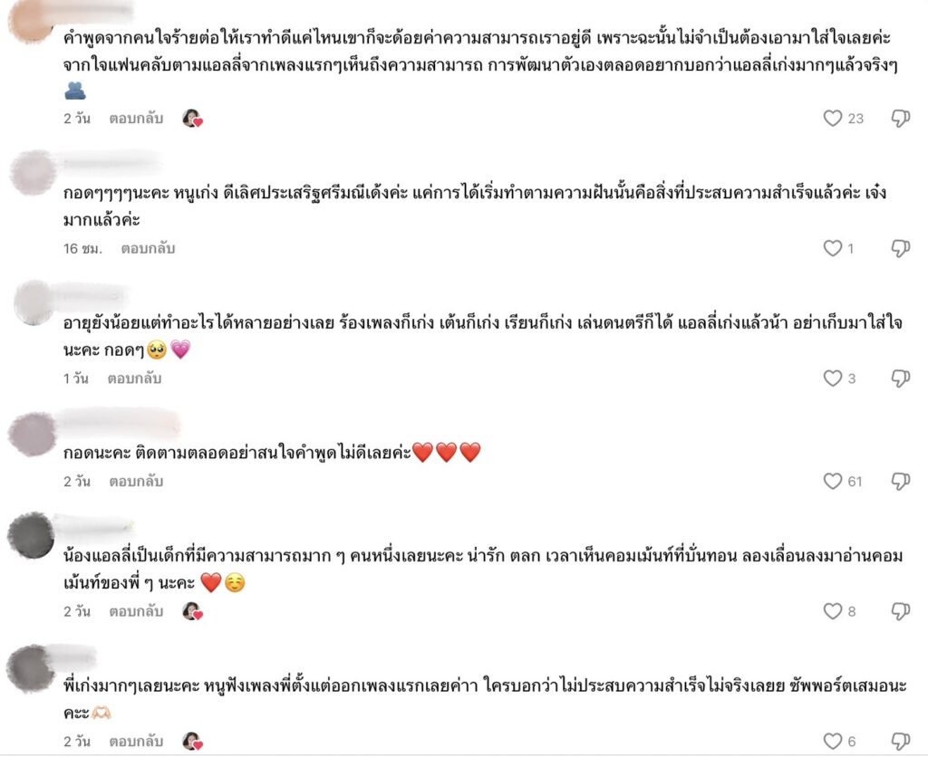 หลังจากที่แฟนๆ ได้เห็นโพสต์ดังกล่าวก็ต่างเข้าไปคอมเมนต์ให้กำลังกันอย่างล้นหลามและไม่อยากให้สาว “แอลลี่” เก็บคำพูดที่ไม่ดีมาบั่นทอนจิตใจ
