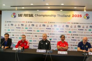 วันที่ 8 เมษายน 2568 ณ ห้องประชุมโรงแรมสีมาธานี ได้มีการแถลงข่าวความพร้อมก่อนการแข่งขันฟุตซอลชาย SAT Futsal Championship 2025 ซึ่งจะจัดขึ้นระหว่างวันที่ 9-12 เมษายน 2568 ที่ เทอร์มินอล ฮอลล์ ศูนย์การค้าเทอร์มินอล 21 โคราช จังหวัดนครราชสีมา โดยมี 4 ชาติชั้นนำเข้าร่วมฟาดแข้ง ได้แก่