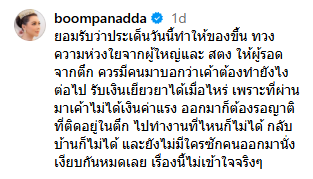 ล่าสุดนักแสดงสาวใจบุญ “บุ๋ม ปนัดดา” ได้เป็นอีกหนึ่งกระบอกเสียงให้กับญาติผู้สูญหาย โดยเจ้าตัวได้โพสต์รูปภาพพร้อมระบุข้อความว่า “ยอมรับว่าประเด็นวันนี้ทำให้ของขึ้น ทวงความห่วงใยจากผู้ใหญ่และ สตง ให้ผู้รอดจากตึก ควรมีคนมาบอกว่าเค้าต้องทำยังไงต่อไป รับเงินเยียวยาได้เมื่อไหร่ เพราะที่ผ่านมาเค้าไม่ได้เงินค่าแรง ออกมาก็ต้องรอญาติที่ติดอยู่ในตึก ไปทำงานที่ไหนก็ไม่ได้ กลับบ้านก็ไม่ได้ และยังไม่มีใครซักคนออกมานั่งเงียบกันหมดเลย เรื่องนี้ไม่เข้าใจจริงๆ”