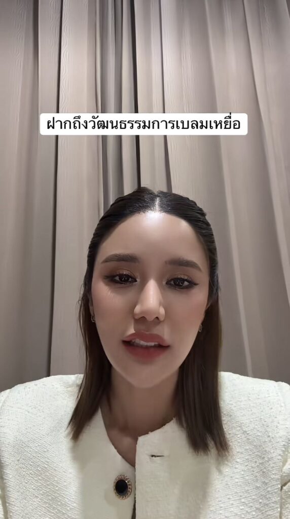“แต่ที่ต้องออกมาพูด เพราะอยากช่วยหลาย ๆ คนและพอไปอ่านกระแสคอมเมนต์ รู้สึกว่าโฟกัสผิดจุด คนกลับด่าเหยื่อต่าง ๆ นานา ไม่ใช่แค่เคสนี้ อีกหลาย ๆ เคส คุณควรเห็นใจคนที่ตกเป็นเหยื่อ แล้วถามหน่อยถ้าเป็นคุณจะกล้าออกมาพูดไหม จะกล้าเอาชื่อเสียงออกมาไหม ทั้งที่รู้ว่าเดี๋ยวคนก็ล้อ ก็มีกระแสโจมตี จะออกมาพูดไหม ถ้าพี่ไม่พูด การดำเนินคดีต่าง ๆ จะดำเนินไหม เชื่อไหมว่าอีกอย่างที่มันฮีลใจพี่มาก ๆ คือการที่ผู้เสียหายทักเข้ามาหาหลายคนมาก และขอบคุณที่ออกมาเทคแอคชั่น ขอบคุณที่ได้มาคลายปมในชีวิตเขา ได้เห็นคนที่ทำร้ายเขาได้รับโทษ พี่ก็รู้สึกดีที่ได้ช่วยหลาย ๆ คน อยากให้คนที่คอมเมนต์ไม่ดีต่าง ๆ คุณกำลังมองผิดจุดด้วย”