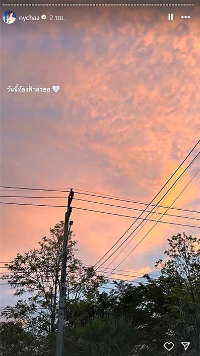 ล่าสุด “ณิชา” ได้ออกมาเคลื่อนไหวหลังจากมีดราม่าดังกล่าว โดยเธอโพสต์สตอรี่รูปท้องฟ้าพร้อมเขียนข้อความสั้น ๆ ว่า “วันนี้ท้องฟ้าสวยย” และใส่อีโมจิรูปหัวใจสีขาว