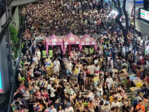 สงกรานต์สีลมวันที่ 2 สุดมันส์!  นักท่องเที่ยว ชาวไทย-ต่างชาติ เล่นน้ำคับคั่ง สาดน้ำกันฉ่ำ ตั้งเวทีเครื่องเสียงเพิ่มความสนุก