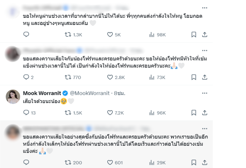 หลังจากโพสต์ไปได้ไม่นาน เหล่าแฟนคลับก็เข้ามาร่วมแสดงความเสียใจและร่วมแสดงความไว้อาลัยกันมากมาย ทางทีมข่าว INN ขอแสดงความเสียใจอย่างสุดซึ้งต่อการจากไปของ “คุณพ่อจุติณัฏฐ์” และขอส่งกำลังใจให้กับ “โฟร์ท” และครอบครัว มา ณ ที่นี้