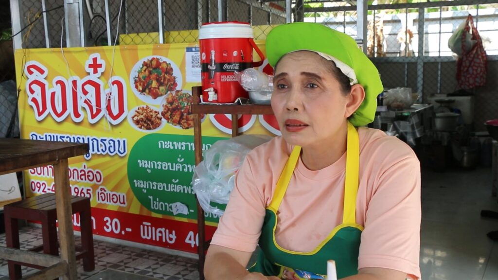นางพนิดา มีสุข อายุ 57 ปี พนักงาน ร้านจิงเจ๋ง กะเพราหมูกรอบ กล่าวว่า ตอนเริ่มเปิดร้านหมูสดยังมีราคาถูก ร้านจึงสามารถที่จะขายเมนูเริ่มต้นที่ราคา 30 ทุกเมนู ซึ่งจำได้ว่าตอนนั้นหมูราคา 160-190 บาท ต่อกิโลกรัม หลังจากนั้นราคาหมูสดเริ่มปรับตัวสูงขึ้นมาอย่างต่อเนื่องทางร้านจึงต้องปรับราคาขาย เป็นเริ่มต้นที่เมนูละ 40 บาท