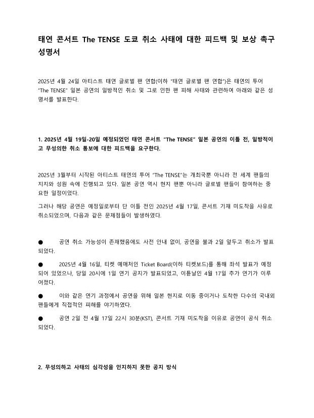 - เป็นการสรุปข้อเรียกร้องทั้งหมดจากแฟนคลับของ “แทยอน”