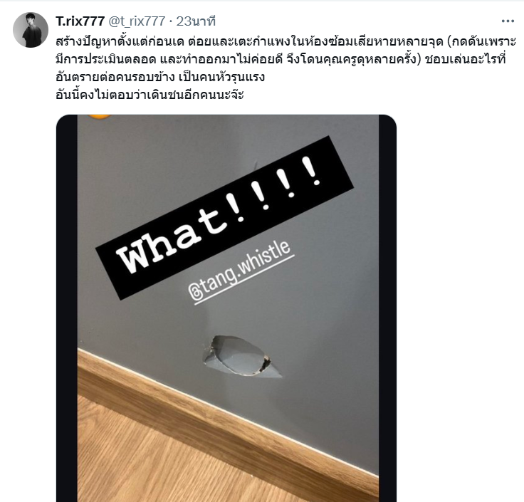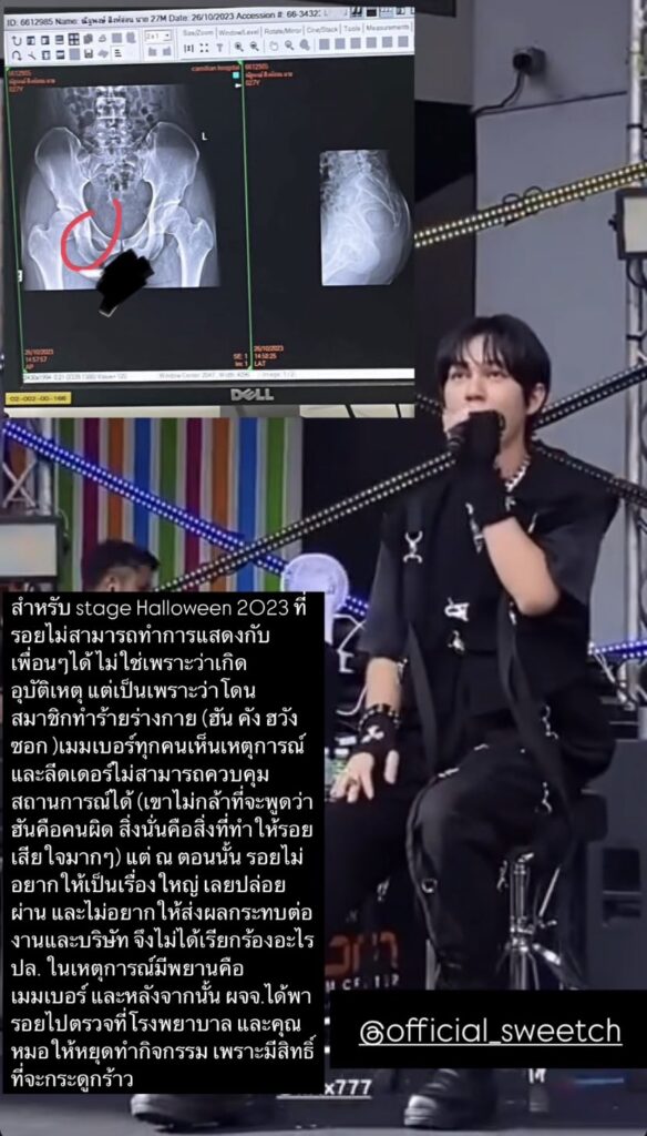 “เมมเบอร์ทุกคนเห็นเหตุการณ์และลีดเดอร์ไม่สามารถควบคุมสถานการณ์ได้ (เขาไม่กล้าที่จะพูดว่าฮันคือคนผิด สิ่งนั่นคือสิ่งที่ทำให้รอยเสียใจมากๆ) แต่ ณ ตอนนั้น รอยไม่อยากให้เป็นเรื่องใหญ่ เลยปล่อยผ่าน และไม่อยากให้ส่งผลกระทบต่องานและบริษัท จึงไม่ได้เรียกร้องอะไรปล. ในเหตุการณ์มีพยานคือเมมเบอร์ และหลังจากนั้น ผจจ.ได้พารอยไปตรวจที่โรงพยาบาล และคุณหมอให้หยุดทำกิจกรรม เพราะมีสิทธิ์ที่จะกระดูกร้าว”
