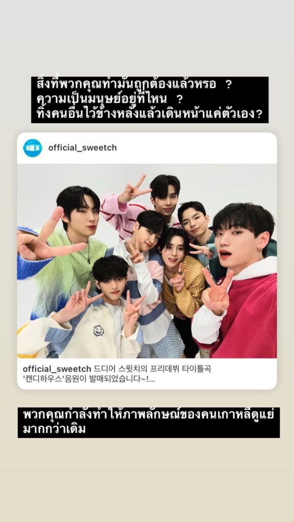 ปัจจุบัน “HAN” ได้เป็นสมาชิกวง SweetCH ซึ่งทางต้นสังกัดได้ออกมาชี้แจงว่าเป็นเพียงการเดินชน ทำให้ “ROY” และแฟนคลับไม่พอใจอย่างมาก จึงแฉวีรกรรมต่าง ๆ อีกมากมายที่ “HAN” ก่อที่เป็นการสร้างภาพลักษณ์เสียหายให้กับชาวเกาหลีใต้ ซึ่งเรื่องราวนี้จะจบลงอย่างไรคงต้องติดตามต่อไป