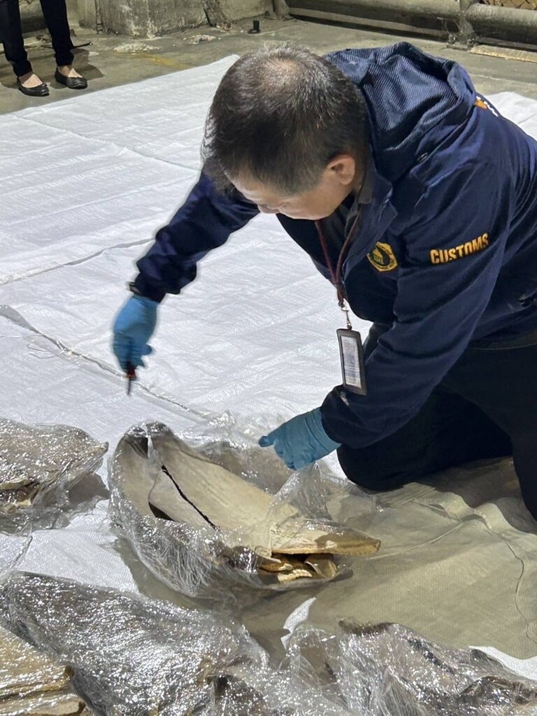 จนกระทั่งวันที่ 1 พฤษภาคม 2568 กรมศุลกากร โดยกองสืบสวนและปราบปราม และสำนักงานศุลกากรตรวจสินค้าท่าอากาศยานสุวรรณภูมิ ได้บูรณาการร่วมกับกรมประมง กองบังคับการปราบปรามการกระทำความผิดเกี่ยวกับทรัพยากรธรรมชาติและสิ่งแวดล้อม และบริษัท การบินไทย จำกัด (มหาชน) ร่วมกันตรวจยึดหีบห่อสินค้าต้องสงสัย ณ คลังสินค้า เขตปลอดอากรท่าอากาศยานสุวรรณภูมิ โดยมีต้นทางจากประเทศตรินิแดดและโตเบโก แวะเปลี่ยนเครื่องที่สาธารณรัฐประชาชนจีน ปลายทางประเทศไทย โดยสำแดงชนิดสินค้าเป็น “DRY FISH” ผลการตรวจค้นพบ ครีบปลาฉลาม จำนวน 402 ชิ้น น้ำหนักรวมสิ่งห่อหุ้ม ประมาณ 102 กิโลกรัม มูลค่ากว่า 2 ล้านบาท