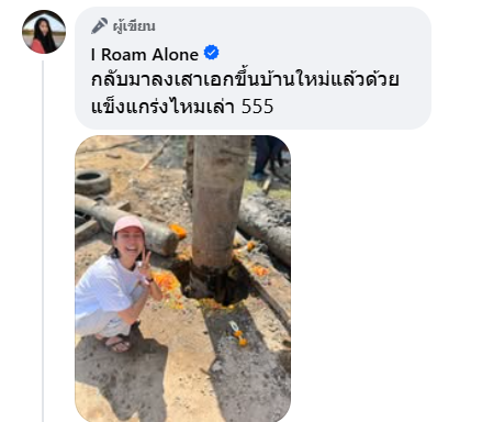 หลังจากนั้นไม่นานเจ้าตัวก็ได้มาคอมเมนต์ใต้โพสต์ของตัวเองว่า “กลับมาลงเสาเอกขึ้นบ้านใหม่แล้วด้วย แข็งแกร่งไหมเล่า 555” เรียกได้ว่าสมกับที่เป็นสาวแกร่งจริง ๆ