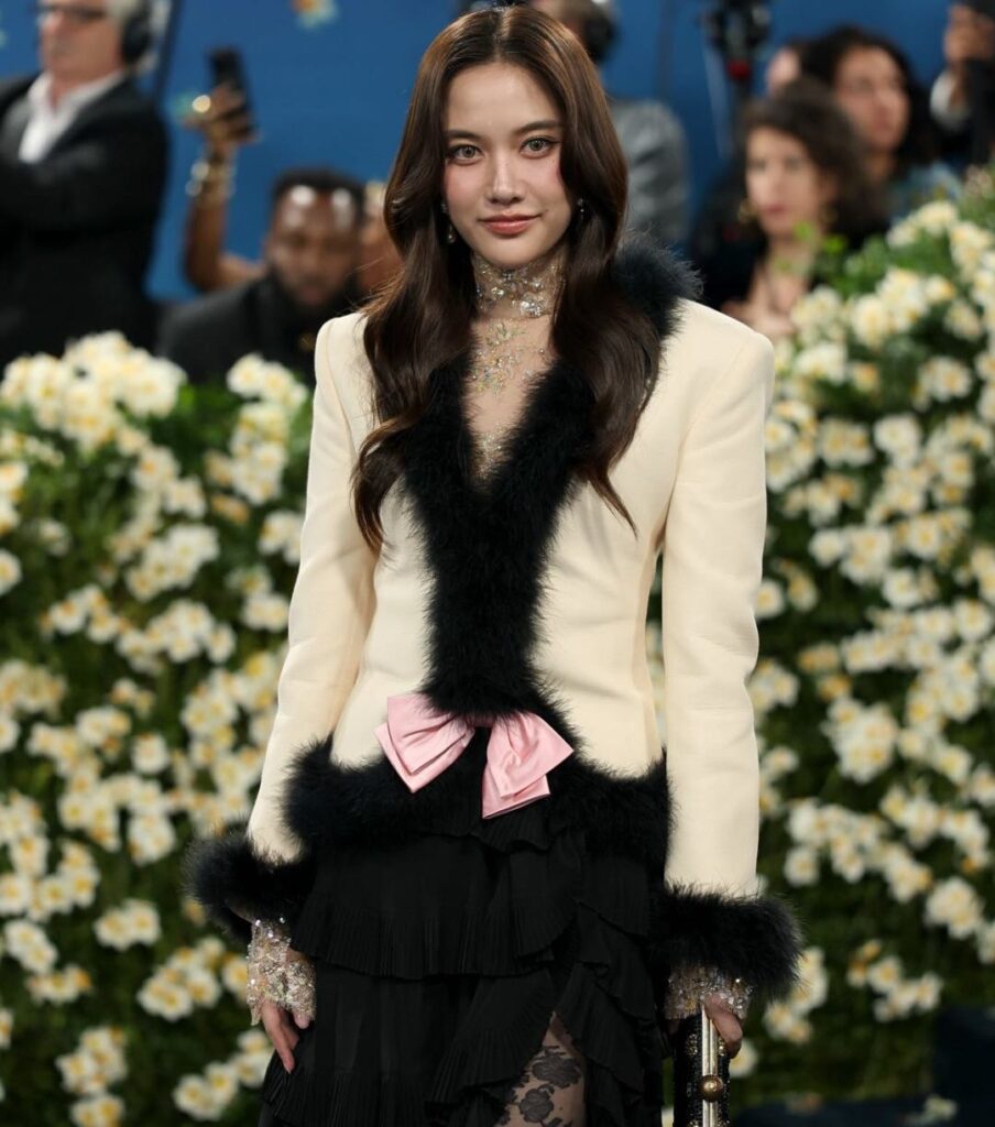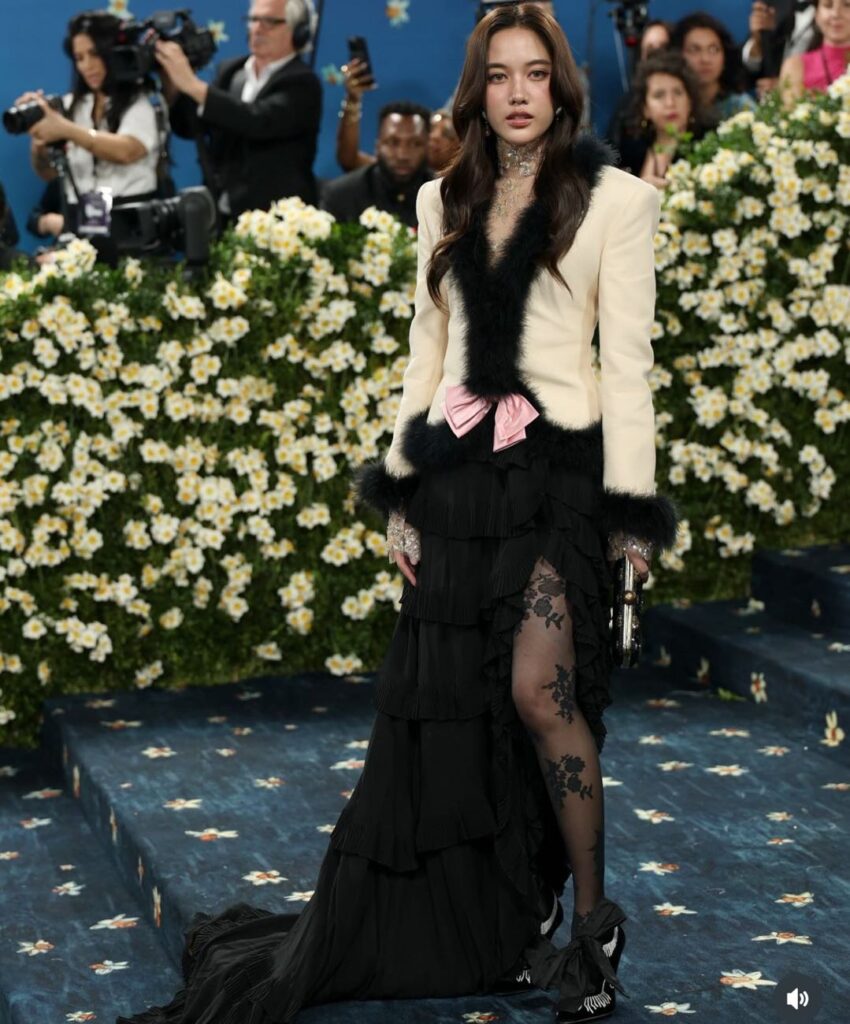 แต่ที่ทำเอาคนไทยฮือฮาสุดๆ และพุ่งขึ้นเทรนด์X อย่างรวดเร็ว ก็นักแสดงสาว “ฟรีน สโรชา” ที่ได้เดินทางไปร่วมงาน “Met Gala 2025” ด้วย ในฐานะแบรนด์แอมบาสซาเดอร์ของแบรนด์ Valentino อีกทั้งยังถือเป็นนักแสดงหญิงชาวไทยคนแรกที่จะได้เดินพรมแดงงานกาล่าสุดยิ่งใหญ่แห่งปีนี้ โดยสาว “ฟรีน” มาในลุคที่สวยสะกด สะดุดทุกสายตา ที่ปรากฏตัวพรมน้ำเงินด้วยการสวมเสื้อสูทสีขาวดีเทลตัดต่อขนเฟอร์สีดำช่วงขอบ ปก และข้อมือ พร้อมด้วยดีเทลประดับโบว์และกระโปรงจับระบายสีดำเผยให้เห็นถุงน้องสีดำซีทรูลายดอกไม้ ต้องบอกเลยว่าลุคนี้สวยซ่อนเปรี้ยว ที่ลงตัวสุดๆ