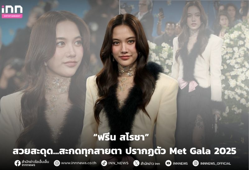 จึ้งเกินต้าน! “ฟรีน สโรชา” สวยสะดุด…สะกดทุกสายตา ปรากฏตัว Met Gala 2025 พุ่งติดเทรนด์ X
