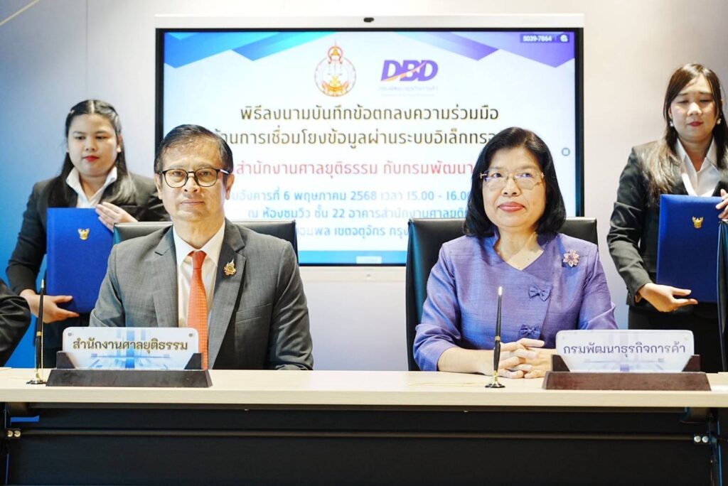 กรมพัฒนาธุรกิจการค้า MOU สำนักงานศาลยุติธรรม เชื่อมโยงข้อมูลหลังบ้าน หนุนกระบวนการยุติธรรมให้รวดเร็ว ทันเวลา และยกระดับการทำงานภาครัฐสู่ยุคดิจิทัล
