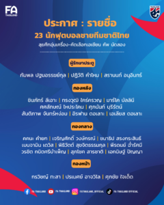 ประกาศ : รายชื่อ 23 นักเตะทีมชาติไทย ชุดลุยศึกอุ่นเครื่อง-คัดเลือกเอเชียน คัพ นัดที่สอง