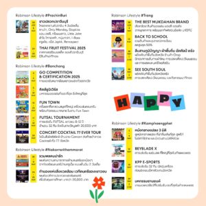 ศูนย์การค้าโรบินสันไลฟ์สไตล์ ในเครือเซ็นทรัล รีเทล ชวนคุณมาสัมผัสความสุข กับคอนเซ็ปต์ “Happiness is calling” ตลอดเดือนพฤษภาคมนี้ ผ่านอิเวนต์สุดพิเศษที่ตอบโจทย์ทุกเจนในครอบครัว ไม่ว่าจะเป็นการแข่งขันกีฬา การแสดงความสามารถของเยาวชน แฟชั่นโชว์ คัฟเวอร์แดนซ์ อิเวนต์ Back to School ที่ช่วยเติมไฟให้เด็กๆ พร้อมเปิดเทอมอย่างสร้างสรรค์ และกิจกรรมปลุกพลังต้อนรับวันใหม่อย่างสดใส นอกจากนี้ยังมีมหกรรมอาหาร งานแฟร์สินค้าโอทอปและสินค้าท้องถิ่นจากทั่วทุกภูมิภาค งานประกวดสัตว์เลี้ยง และมินิคอนเสิร์ตจากศิลปินชื่อดังทั่วไทย มาร่วมสนุกทุกโมเมนต์แห่งความสุขได้ตลอดเดือนพฤษภาคมนี้ ที่ศูนย์การค้าโรบินสันไลฟ์สไตล์ ทุกสาขาทั่วประเทศ