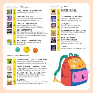 12 พ.ค. 68 –18 พ.ค. 68 5th Anniversary Robinson Lifestyle Bowin เฉลิมฉลองครบรอบ 5 ปีของศูนย์การค้าโรบินสันไลฟ์สไตล์ บ่อวิน สนุกกับกิจกรรมสุดพิเศษตลอดเดือน เพื่อขอบคุณลูกค้า