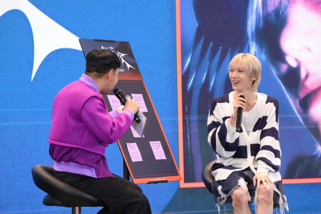 ตลอดทั้งกิจกรรม Shopee x TEN ‘STUNNER’ FANSIGN EVENT ครั้งนี้ TEN (เตนล์) ได้สร้างรอยยิ้มให้กับแฟนคลับชาวไทยที่มารวมตัวแสดงพลังความรักและการสนับสนุนกันจนเต็มทุกพื้นที่ แถมยังเรียกเสียงเชียร์อย่างถล่มทลายตั้งแต่การปรากฏตัวบนเวทีครั้งแรกในช่วงถาม-ตอบ (Q&A) ซึ่ง TEN (เตนล์) ได้ตอบคำถามที่แฟน ๆ ส่งเข้ามาอย่างเป็นกันเอง