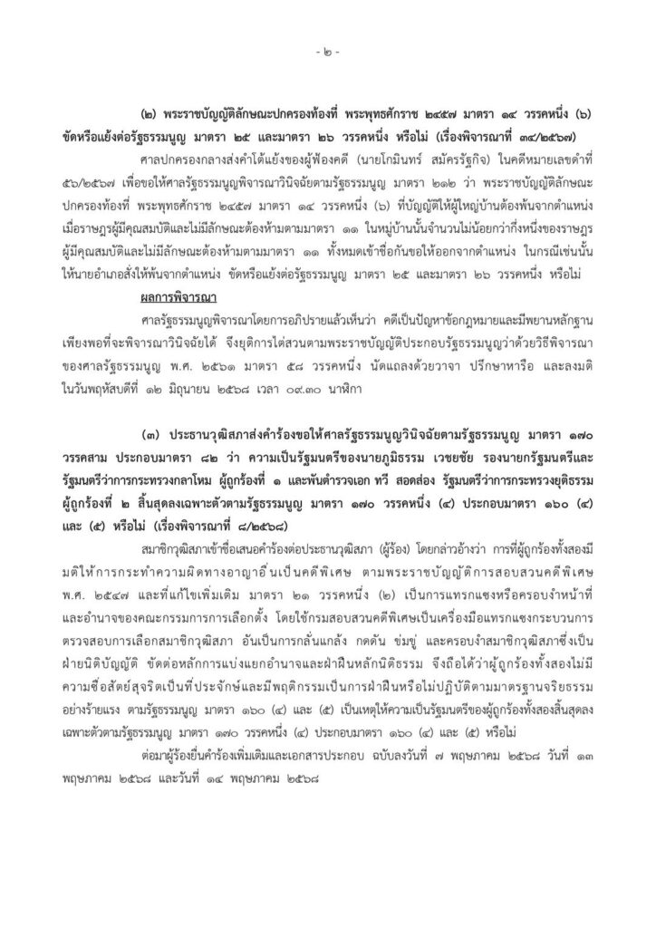 ของนายภูมิธรรม เวชยชัย รองนายกรัฐมนตรีและรัฐมนตรีว่าการกระทรวงกลาโหม ผู้ถูกร้องที่ 1 และพันตำรวจเอก ทวี สอดส่อง รัฐมนตรีว่าการกระทรวงยุติธรรม ผู้ถูกร้องที่ 2 สิ้นสุดลงเฉพาะตัว