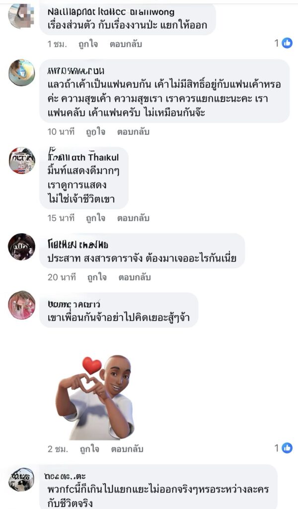 บันเทิงไทย แฟนคลับซัดกันนัว! ปม “มิ้นท์ รัญชน์รวี” ละครออนคู่ “ริว” แต่ดันอยู่กับ ”กองทัพพีค“ 14 พฤษภาคม 2025 - 14:40 ดราม่าซะงั้น! “มิ้นท์ รัญชน์รวี” โดนชาวเน็ตฟาดติง ละครออนคู่ “ริว” แต่ดันอยู่กับ ”กองทัพพีค“ แฟนคลับโร่ปกป้อง อย่าอินกับละคร เรียกว่าอยู่ดีๆก็กลายเป็นดราม่าซะงั้น สำหรับนางเอกสาว “มิ้นท์ รัญชน์รวี“ ที่แฟนละครอินจัดกับเรื่อง ”เมื่อตะวันลับฟ้าก็จะเป็นเวลาของดวงดาว“ ที่เจ้าตัวเล่นประกบคู่ ”ริว วชิรวิชญ์“ เนื่องจากเคมีของทั้งคู่เข้ากันได้ดีแบบไร้ที่ติ แต่ทำเอาดราม่าสนั่นโลกโซเชียล เนื่องจากแฟนละครบางส่วนรู้สึกไม่โอเค เมื่อเห็นภาพ พฤติกรรมของสาว ”มิ้นท์“ ที่ควงหนุ่มคนสนิทอย่าง ”กองทัพพีค“ ไปร่วมงานวันเกิดด้วยความสนุก ทำเอาชาวเน็ต ออกมาคอมเมนต์ด้วยความไม่พอใจประมาณว่า วันนี้ละครคู่ริวฉาย แต่ไปกับกองทัพ หมายความว่าไงเนี่ย หรือ ไม่ให้เกียรติริวเลยนะ ต่อมางานนี้ทางด้านแฟนคลับของสาว “มิ้นท์” ก็ออกมาปกป้อง โดยคอมเมนต์ฟาดกลับชาวเน็ตที่เข้ามาด่า ว่า “เรื่องส่วนตัว กับเรื่องงานป่ะ แยกให้ออก ,ประสาท สงสารดาราจัง ต้องมาเจออะไรกันเนี่ย , พวกfcนี้ก็เกินไปแยกแยะไม่ออกจริงๆหรอระหว่างละครกับชีวิตจริง , ดูละครเพื่อความบันเทิงค่ะ , อันนั้นชีวิตจริงเขามั้ยล่ะ แยกละครกะชีวิตจริงไม่ได้อ่อ“ อีกมากมาย ติดตามเนื้อหาดีๆแบบนี้ได้ที่ Facebook : https://www.facebook.com/innnews.co.th Twitter : https://twitter.com/innnews Youtube : https://www.youtube.com/c/INNNEWS_INN TikTok : https://www.tiktok.com/@inn_news LINE Official Account : @innnews ทั่วไปอย. พลิกโฉมสุขภาพคนไทยสู้ภัย NCDs เปิดงาน “มหกรรมผลิตภัณฑ์ทางเลือกสุขภาพ”ข่าวจีนขายอาวุธให้ใครบ้าง นอกจากไทย-เขมร ?!