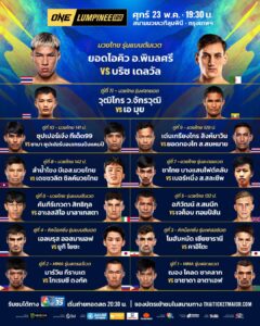โปรแกรมการแข่งขันทุกคู่ศึก ONE ลุมพินี 109