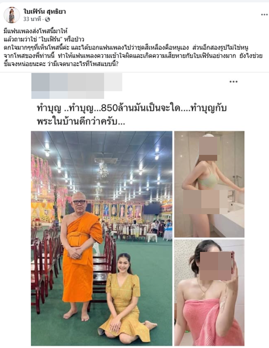 ปิดท้ายด้วยเรื่องอื้อฉาวของพระวัดดังที่ยักยอกเงินไปและมีและยังมีประเด็นคลิปวิดีโอไม่เหมาะสมในโทรศัพท์มือถือ ซึ่งชาวเน็ตก็ได้โยงไปหานักร้องลูกทุ่งจากเวทีไมค์ทองคำ “ใบเฟิร์น สุทธิยา” เจ้าตัวจึงออกมาโต้ว่า “มีแฟนเพลงส่งโพสนี้มาให้