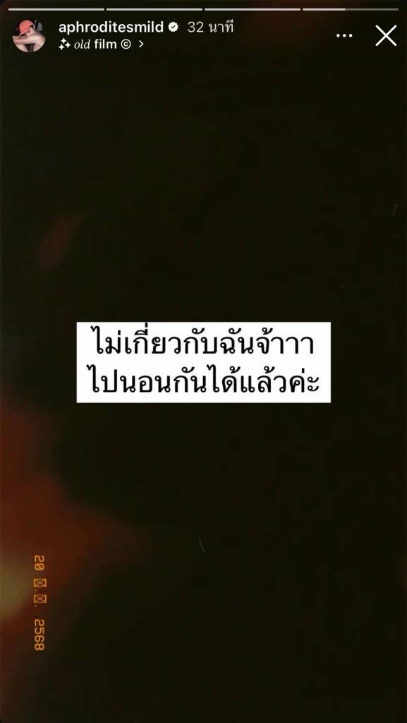 ท่ามกลางความสงสัยว่าเกิดอะไรขึ้นกับสาว ”พลอย“ กันแน่ และไฮไลเด็ดเนื่องจากหลายคนโยงคนที่ทำให้สาว “พลอย” เดือด คือ “มายด์ พัชรบุษย์“ ที่ก่อนนี้เคยตกเป็นประเด็นโดน หนุ่ม”โต้ง ทูพี“ จีบ ล่าสุดสาว ”มายด์“ ได้ออกมาเคลื่อนไหวชี้แจงโดยการโพสต์สตอรี่ที่เขียนว่า ” ไม่เกี่ยวกับฉันจ้าไปนอนกันได้แล้วค่ะ“