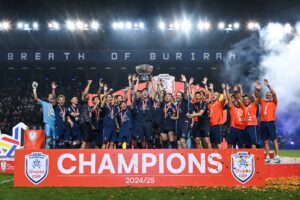 สำหรับโปรแกรมนัดต่อไปของ “ปราสาทสายฟ้า” บุรีรัมย์ ยูไนเต็ด จะลงเล่นทำศึกฟุตบอลช้าง เอฟเอ คัพ 2024/25 รอบชิงชนะเลิศ ด้วยการพบกับ “กิเลนผยอง” เมืองทอง ยูไนเต็ด ที่สนามม.ธรรมศาสตร์ (รังสิต) ในวันเสาร์ที่ 24 พฤษภาคม 2568 คิกออฟเวลา 18.00 น.