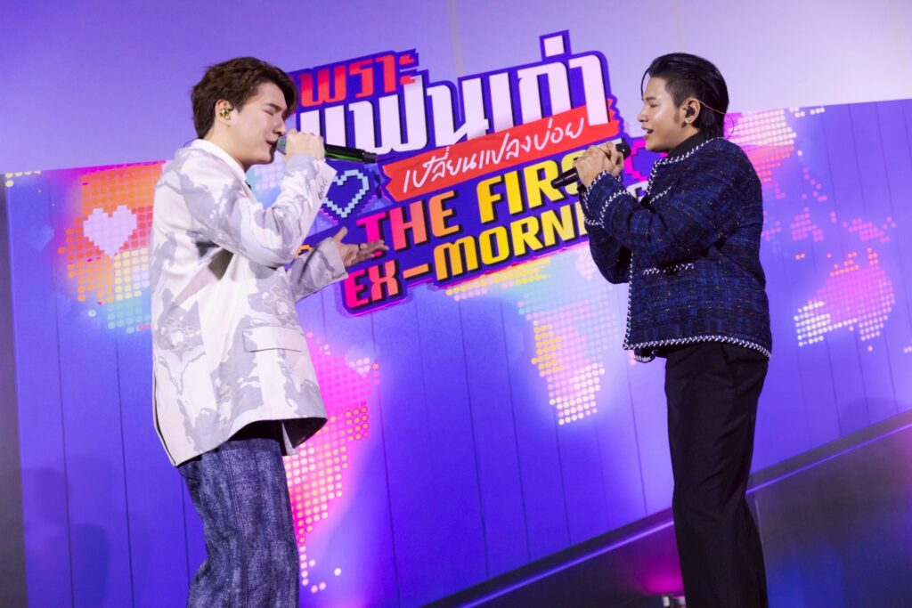 เติมเต็มความคิดถึงด้วย Special Show สุด Exclusive จาก “คริส-สิงโต” ที่จับไมค์ร้องเพลง“สิ่งที่คิด (BETTER THAN)” และเพลง “รักก็ได้ (Morning Love)” เพลงประกอบซีรีส์ “เพราะแฟนเก่าเปลี่ยนแปลงบ่อย The Ex-Morning” ของทั้งคู่ที่ทำเอาแฟนๆ ใจฟู พร้อมกดชัตเตอร์รัวๆ เก็บภาพความสุขกันชุดใหญ่ จากนั้นพิธีกรอารมณ์ดี “ก๊อตจิ-ทัชชกร บุญลัภยานันท์” และยังรับบท “ริต้า” ในเรื่องชวน “คริส-สิงโต” ขึ้นบนเวทีกล่าวต้อนรับแฟนๆ ทั้งชาวไทยและชาวต่างชาติเข้าสู่งาน “เพราะแฟนเก่าเปลี่ยนแปลงบ่อย The First Ex-Morning”