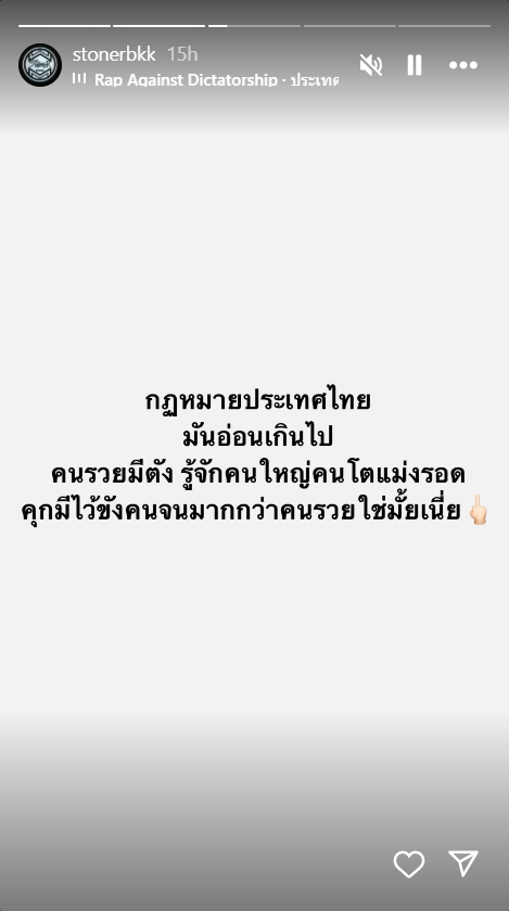 ล่าสุด “เบิร์ด” ได้ออกมาโพสต์สตอรี่กลางดึกแสดงความไม่พอใจโดยระบุข้อความว่า “กฎหมายประเทศไทยมันอ่อนเกินไป คนรวยมีตังค์ รู้จักคนใหญ่คนโตแม่งรอด คุกมีไว้ขังคนจนมากกว่าคนรวยใช่มั้ยเนี่ย”