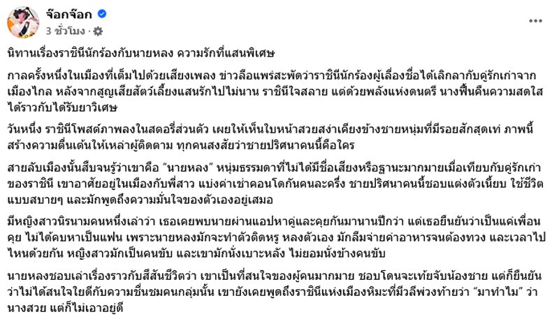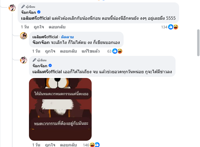 เป็นเรื่องอีกแล้วสำหรับ “มิกซ์ เฉลิมศรี” ที่เพิ่งเปิดตัวหนุ่มคนใหม่ไปได้ไม่นานก็มีประเด็นเมื่อเพจจ๊อกจ๊อก ได้โพสต์ถึงนิทานเรื่องราชินีนักร้องกับนายหลง ความรักที่แสนพิเศษไป “มิกซ์” ก็ได้เข้ามาคอมเมนต์ว่า “ราชินี ต้องมี ผัว อายุ สามเดือนปะ จะได้ไม่ต้องมี สตอรี่ ผ่าน อีสาวที่ไหนมาก่อน รอบนี้ หลงขับ นะ เขาไม่ขับให้เพราะไรอะ งง” ทางด้านเพจจ๊อกจ็อกก็ได้มาตอบกลับว่า “แต่ผัวต้องเลิกกับน้องนีก่อน ตอนนี้น้องนีอีกคนยัง งงๆ อยู่เลยมึง 5555”