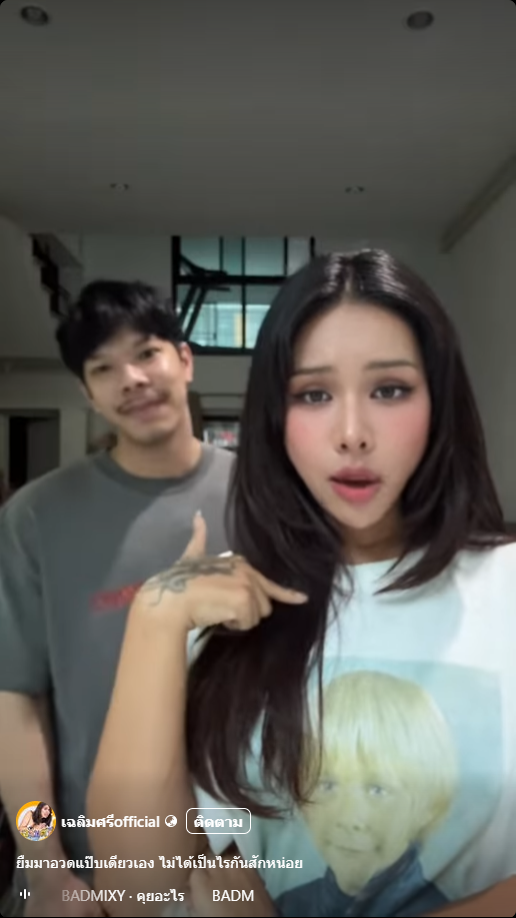 นอกจากนี้ยังได้โพสต์คลิปคู่กับหนุ่มที่เป็นประเด็นพร้อมแคปชั่นว่า “ยืมมาอวดแป๊บเดียวเอง ไม่ได้เป็นไรกันสักหน่อย” ทำให้งานนี้ชาวเน็ตเข้ามาแสดงความคิดเห็นอย่างล้นหลาม