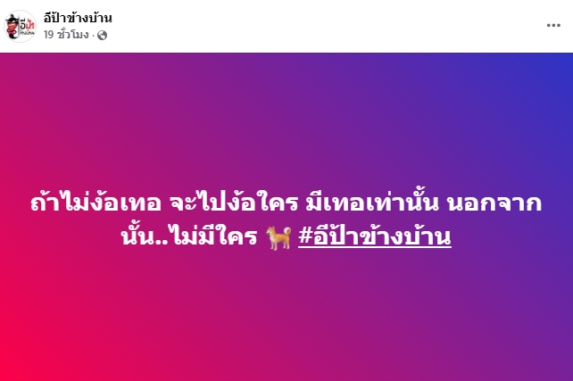 ซึ่งโพสต์ที่บอกว่าเลิกกันนั้นได้ถูกลบไปแล้วทำให้ชาวเน็ตจับตามองว่าเกิดอะไรขึ้น ขณะเดียวกันเพจอีป้าข้างบ้านก็ได้โพสต์ข้อความแบบมีนัยยะว่า “ถ้าไม่ง้อเทอ จะไปง้อใคร มีเทอเท่านั้น นอกจากนั้น..ไม่มีใคร #อีป้าข้างบ้าน” และยังได้เขียนคอมเมนต์ด้วยว่า “รออีกสักพัก ลุ้นว่าหอนนนมั้ย”