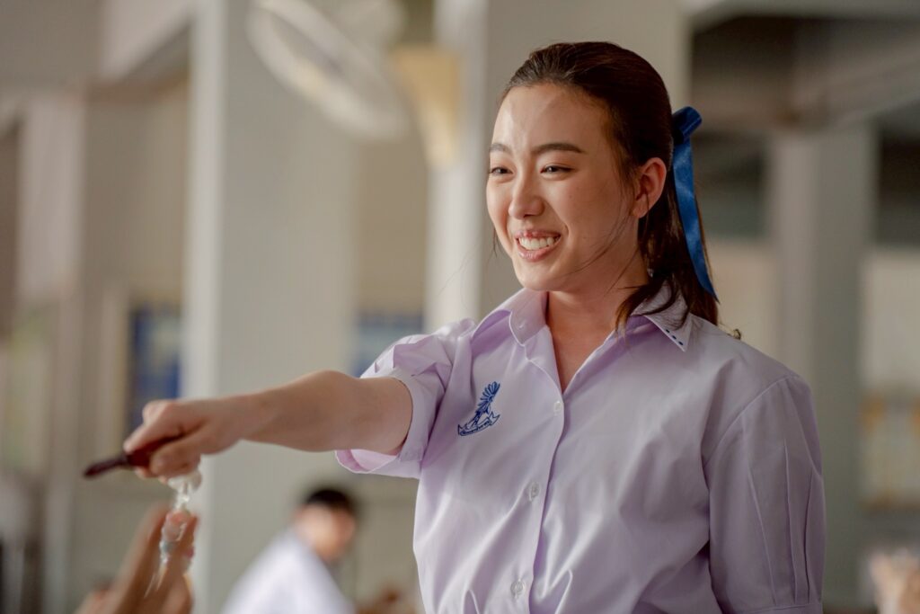 “อ๊ะอายเคยร่วมงานกับผู้กำกับ พี่คุ้ย มาแล้วใน “ครูเพ็ญศรีกับเลดี้ปอบ” พี่คุ้ยยังให้อิสระทางการแสดงเหมือนเดิม อย่างบทพูดเขาให้เราปรับเป็นภาษาวัยรุ่นที่เข้าปาก แต่หนูเคยผ่านแต่งานแสดงพีเรียด เลยไม่ค่อยชินเวลาที่พูด ต้องปรับการแสดงค่อนข้างเยอะ ลองสังเกตคนอื่น ๆ รอบตัวว่าเขาทำท่าทางยังไงให้ดูวัยรุ่น เรื่องนี้ช่วยพัฒนาทักษะการแสดงอ๊ะอายเยอะเลย