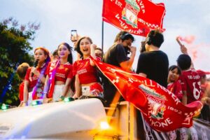 ขบวนแห่ตกแต่งรถด้วยธีมลิเวอร์พูล พร้อมสัญลักษณ์ทีม และได้รับอนุญาตจาก สภ.เมืองนครราชสีมา ในการอำนวยความสะดวกด้านการจราจร โดยมีรถแห่ขนาดใหญ่ 2 คัน รถเครื่องเสียง รถยนต์กว่า 50 คัน และรถจักรยานยนต์ร่วมอีกกว่า 70 คัน