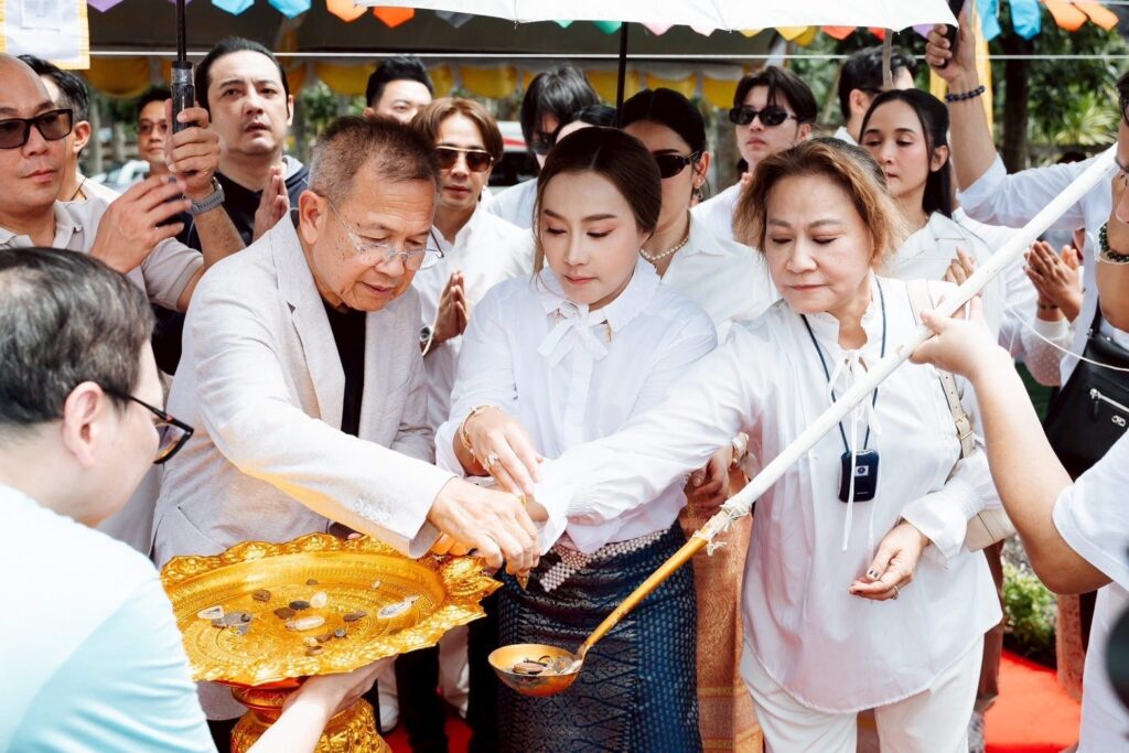โดยครั้งนี้ได้อัญเชิญพระเกจิทั่วฟ้าเมืองไทยมาร่วมสวดเสริมศิริมงคล พิธีเริ่มตั้งแต่ช่วงเช้าโดยพราหมณ์มาตั้งโต๊ะหมู่บูชา ก่อนที่จะสวดเปิดทางให้สิ่งศักดิ์สิทธิ์ได้รับรู้ ความปังของพิธีในครั้งนี้ก็คือ การรวบรวมเอามวลสารพระเกจิคณาจารย์ทั่วฟ้าเมืองไทย ทั้งเหรียญโลหะและพระผง รวมถึงเครื่องรางของขลังจากพระเกจิดังมากมาย รวมไปที่วัดดังกล่าวและเป็นวัดดังในตำนานทั้งนั้น โดยนำมาเป็นมวลสารเข้าเตาหลอมเพื่อสร้างเหรียญพระรุ่นเหนือเมฆ เชื่อว่าใครที่ได้ไปจะเอาชนะทุกสิ่งทุกอย่างได้เหมือนลอยอยู่เหนือเมฆ ซึ่งบรรยากาศท้องฟ้าเป็นใจอย่างน่าอัศจรรย์ ทันทีที่เริ่มพิธีเมฆฝนก็หายวับไปกับตากับเกิดแสงสว่างท้องฟ้าแจ่มใสขึ้นมาทันที โดยพิธีครั้งนี้ไม่ว่าจะเหล่าดารา-นักแสดง เซียนพระ คนดังต่างๆ ทุกคนตั้งใจร่วมพิธีกันทุกขั้นตอน ตั้งแต่การสวดมนต์ การปักธูปที่โต๊ะหมู่บูชา รวมไปถึงการนำเหรียญองค์พระที่ตนเองนับถือมาเข้าเตาหลอมรวมเพื่อนำไปสร้างเป็นเหรียญพระรุ่นเหนือเมฆ