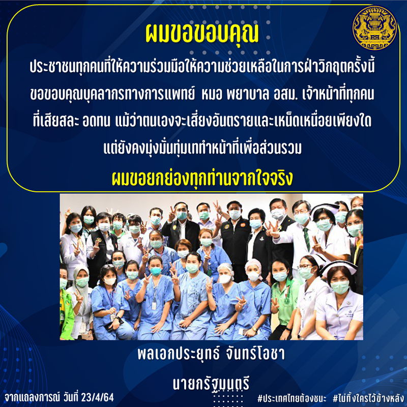 พลเอกประยุทธ์ จันทร์โอชา นายกรัฐมนตรีและรัฐมนตรีว่าการกระทรวงกลาโหม โพสต์ข้อความผ่านเฟซบุ๊ก “ประยุทธ์ จันทร์โอชา Prayut Chan-O-Cha” มีข้อความระบุว่า