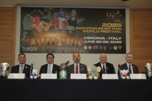 เมื่อวันพุธที่ 4 มิ.ย.68 ที่สำนักงานสภามวยมวยโลก มวยไทย กรุงเทพฯ มีการแถลงข่าวการจัดงาน “อะเมซิ่งมวยไทยเวิลด์เฟสติวัล 2025” (Amazing Muaythai World Festival 2025) ซึ่งจัดโดย สภามวยโลก มวยไทย (WBC MuayThai) ร่วมกับสถานเอกอัครราชทูตอิตาลีประจำประเทศไทย, คณะอนุกรรมการขับเคลื่อนอุตสาหกรรมด้านกีฬา และการท่องเที่ยวแห่งประเทศไทย โดย พล.ต.ธนพล ภักดีภูมิ ประธานสภามวยโลกมวยไทย พร้อมด้วย ฯพณฯ เปาโล ดีโอนีซี (H.E. Mr. Paolo Dionisi) เอกอัครราชทูตสาธารณรัฐอิตาลีประจำประเทศไทย, นายชลิตรัตน์ จันทรุเบกษา รองประธานคณะอนุกรรมการขับเคลื่อนอุตสาหกรรมด้านกีฬา,นายไพรัชช์ ทุมเสน Director of Events Planner Division การท่องเที่ยวแห่งประเทศไทย และ มร.เควิน นูน เลขาธิการสภามวยโลกมวยไทย เพื่อส่งเสริมมวยไทยเพื่อการท่องเที่ยวเชิงกีฬาและวัฒนธรรม ระหว่าง สาธารณรัฐอิตาลีและราชอาณาจักรไทย พร้อมเปิดตัวนักมวยเยาวชนทีมไทยแลนด์สู้ศึกครั้งนี้ โดยมี ม.กรุงเทพธนบุรี ร่วมมอบทุนการศึกษาเป็นรางวัลอัดฉีดให้แก่นักกีฬาด้วย