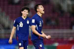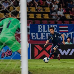 ก่อนที่นาที 74 ไทย เปลี่ยนผู้เล่นอีกครั้ง ส่ง ชินภัทร์ ลีเอาะ และ พีรดนย์ ฉ่ำรัศมี ลงสนามมาเล่นแทน มาร์โค บัลลินี และ คคนะ คำยก