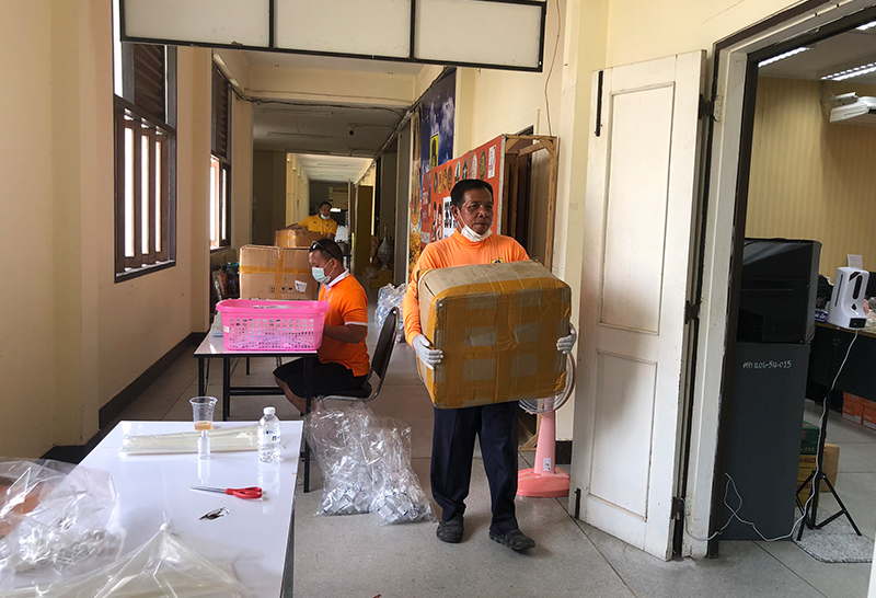 ปภ.ศรีสะเกษเร่งบรรจุ Sisaket gifts set Covid-19 จำนวน 20,000 ชุด แจกชาวบ้านต้านโควิด
