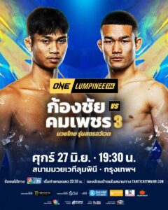 ยกระดับความเดือดเพิ่มอีก 1 คู่ ในศึกนัดใหญ่ ONE ลุมพินี 114 ที่จะระเบิดความมันขึ้นในวันศุกร์ที่ 27มิ.ย.นี้ โดยประกบให้ “ก้องชัย ไฉนดอนเมือง” มวยซ้ายสายลุยจากบุรีรัมย์ มาเปิดศึกไตรภาคแก้มือคู่ปรับเก่า “คมเพชร แฟร์เท็กซ์” มวยขวาเชิงสูงจากเมืองย่าโมโคราช ในกติกามวยไทย รุ่นสตรอว์เวต (115-125 ป.)