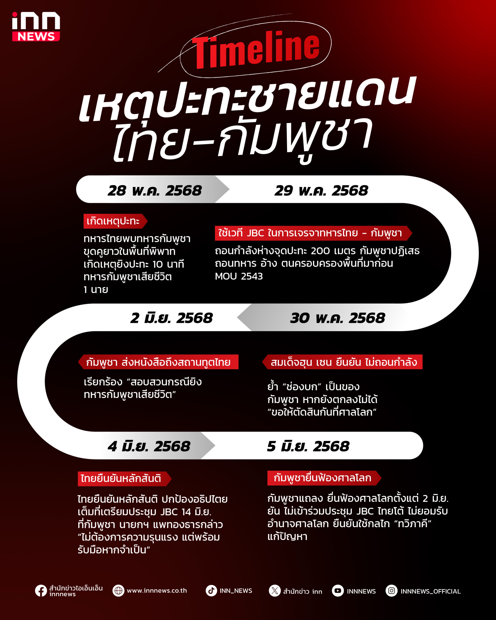ไทม์ไลน์เหตุปะทะชายแดนไทย-กัมพูชา 2568