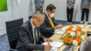 รองศาสตราจารย์ นายสัตวแพทย์ ดร.อนุชัย ภิญโญภูมิมินทร์ รองอธิการบดี มหาวิทยาลัยเกษตรศาสตร์ วิทยาเขตกำแพงแสน ปฏิบัติหน้าที่แทน อธิการบดี ม.เกษตรศาสตร์ กับ นายไทยทนุ วรรณสุข เลขาธิการสมาคมกีฬาลอนเทนนิสแห่งประเทศไทย ในพระบรมราชูปถัมภ์ ได้ร่วมกันทำบันทึกข้อตกลงความร่วมมือทางด้านกีฬา ที่ ม.เกษตรศาสตร์ วิทยาเขตกำแพงแสน จ.นครปฐม ท่ามกลางบรรยากาศชื่นมื่น โดยมี ว่าที่ร้อยตรี ดร.ศิริชัย ศรีพรหม ผู้ช่วยอธิการบดีฝ่ายบริหาร กีฬา และศิลปวัฒนธรรม กล่าวรายงาน
