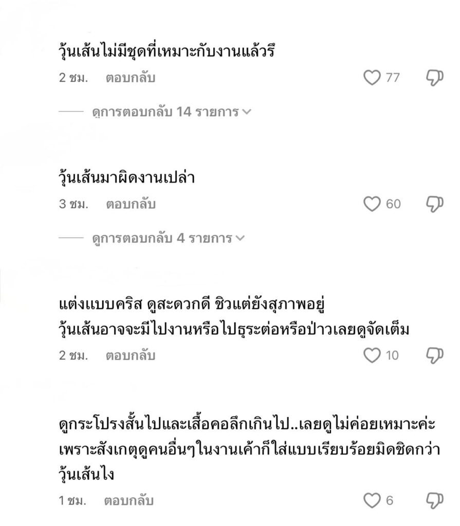 เช่นเดียวกับ3นักแสดง “คริส หอวัง – เจนสุดา และ วุ้นเส้น วิริฒิพา” ที่ได้เดินทางมาร่วมไว้อาลัย “คุณแม่งามทิพย์” เช่นกัน แต่ไม่วายแอบเจอดราม่าเนื่องจากชาวเน็ตเข้ามาคอมเมนต์ตำหนิการแต่งตัวของสาว “วุ้นเส้น” ที่ชุดไม่ให้เกียรติงานและสถานที่ ซึ่งสาว “วุ้นเส้น” มาในชุดเดรส คอแอบลึก ใส่ถุงน่องสีดำ โดยชาวเน็ตเข้ามาคอมเมนต์ว่า “วุ้นเส้นไม่มีชุดที่เหมาะกับงานแล้วรึ ,ดูกระโปรงสั้นไปและเสื้อคอลึกเกินไป..เลยดูไม่ค่อยเหมาะค่ะเพราะสังเกตุดูคนอื่นๆในงานเค้าก็ใส่แบบเรียบร้อยมิดชิดกว่าวุ้นเส้นไง ,วุ้นดูแต่งตัวเหมือนมาร่วมยินดีอ่ะ เฮ้อ! ความสำรวมไม่มี , ชุดเว้าลึกไป รองเท้าจะส้นสูงอะไรขนาดนั้น” แต่ก็มีบางคนเข้ามาปกป้องว่า “พวกชาวบ้าน 1 วิจาร์ณคนอื่น ถามหน่อย สาระรูปที่เม้นนั้น ใส่แบบเขาได้ป่าววว , ชุดวุ้นเส้นก้อไม่น่าเกลียดขนาดนั้นใส่ถุงน่องแล้วดูสุภาพ”