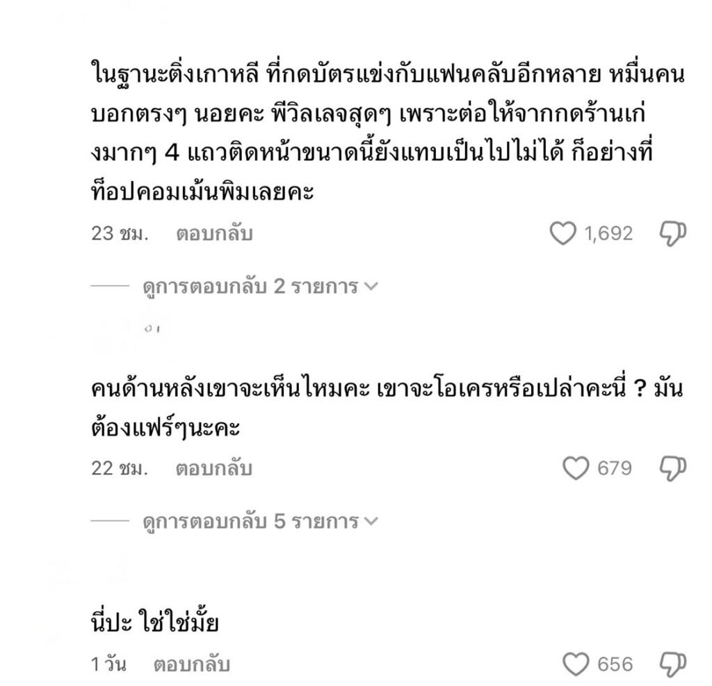 บันเทิงไทย วิจารณ์สนั่น! ชาวเน็ตตั้งคำถาม “ลูกดารา” พริวิเลจ คอนเสิร์ต “BABYMONSTER“ 10 มิถุนายน 2025 - 15:33 วิจารณ์สนั่น! ชาวเน็ตตั้งคำถาม “ลูกดารา” พริวิเลจสุดๆ ไปดูคอนเสิร์ต “BABYMONSTER“ ลั่นบัตรนั่งแต่ยืนตลอด เรียกว่าผ่านพ้นไปด้วยความสนุก อบอุ่น ครบรสสุดๆ สำหรับคอนเสิร์ต “BABYMONSTER 1st WORLD TOUR IN BANGKOK” เมื่อวันที่ 7-8 มิถุนายนที่ผ่านมา ทำเอาเหล่า“MONSTLEZ” ต่างดีใจและประทับใจทุกโชว์ที่ “BABYMONSTER” ขนทัพมาฝากแฟนๆเมืองไทย ล่าสุดอยู่ดีๆ ก็เกิดดราม่าซะงั้น เมื่อทางด้าน ”นานา ไรบีน่า“ ได้ออกมาโพสต์คลิปโมเมนต์การดูคอนเสิร์ตของลูกสาวและเพื่อนลูกสาว โดยมี ”บีน่า – ณิริน -แสนดี“ ที่สนุก สุดเหวี้ยง ทั้งร้อง ทั้งเต้น แถมกระโดดแบบไม่เกรงใจคนที่อยู่ด้านหลังเลยว่าจะบังหรือเปล่า ทำให้ชาวเน็ตเข้ามาคอมเมนต์ วิจารณ์ว่าสนั่นอาทิ ”คนด้านหลังเขาจะเห็นไหมคะ เขาจะโอเครหรือเปล่าคะนี่ ? มันต้องแฟร์ๆนะคะ ‘ บัตรนั่งแต่ยืนไม่ว่าจะด้านหน้าหรือหลังก้ควรนั่งเพราะเป้นบัตรนั่งค่ะเนาะ🥰🥰 ,อ๋อเจอละ ที่ยืนบังคนข้างหลัง บัตรนั่งไม่ใช่หรอคะ , บัตรนั่งแต่ยืนได้ด้วยหรอคะ😔 , ในฐานะติ่งเกาหลี ที่กดบัตรแข่งกับแฟนคลับอีกหลาย หมื่นคนบอกตรงๆ นอยคะ พีวิลเลจสุดๆ เพราะต่อให้จากกดร้านเก่งมากๆ 4 แถวติดหน้าขนาดนี้ยังแทบเป็นไปไม่ได้ ก็อย่างที่ท็อปคอมเม้นพิมเลยคะ และอีกมากมายเลยทีเดียวค่ะ ติดตามเนื้อหาดีๆแบบนี้ได้ที่ Facebook : https://www.facebook.com/innnews.co.th Twitter : https://twitter.com/innnews Youtube : https://www.youtube.com/c/INNNEWS_INN TikTok : https://www.tiktok.com/@inn_news LINE Official Account : @innnews Hot NewsQRRA (คาร์ร่า) ชวน PEONY ร่วมเก็บโมเมนต์งานแฟนมีตส่งท้ายข่าวร้องกรมศิลป์ เอาผิดพระสงฆ์ บุกรุกโบราณสถาน