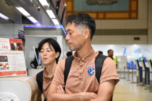 การเดินทางครั้งนี้นำโดย “ฟูโตชิ อิเคดะ” หัวหน้าผู้ฝึกสอนชาวญี่ปุ่น พร้อมด้วยทีมงานสตาฟฟ์โค้ชและนักกีฬา โดยทั้งหมดจะเดินทางด้วยสายการบิน แอร์เอเชีย เที่ยวบินที่ FD3427 เพื่อมุ่งหน้าไปยังท่าอากาศยานนานาชาติเชียงใหม่