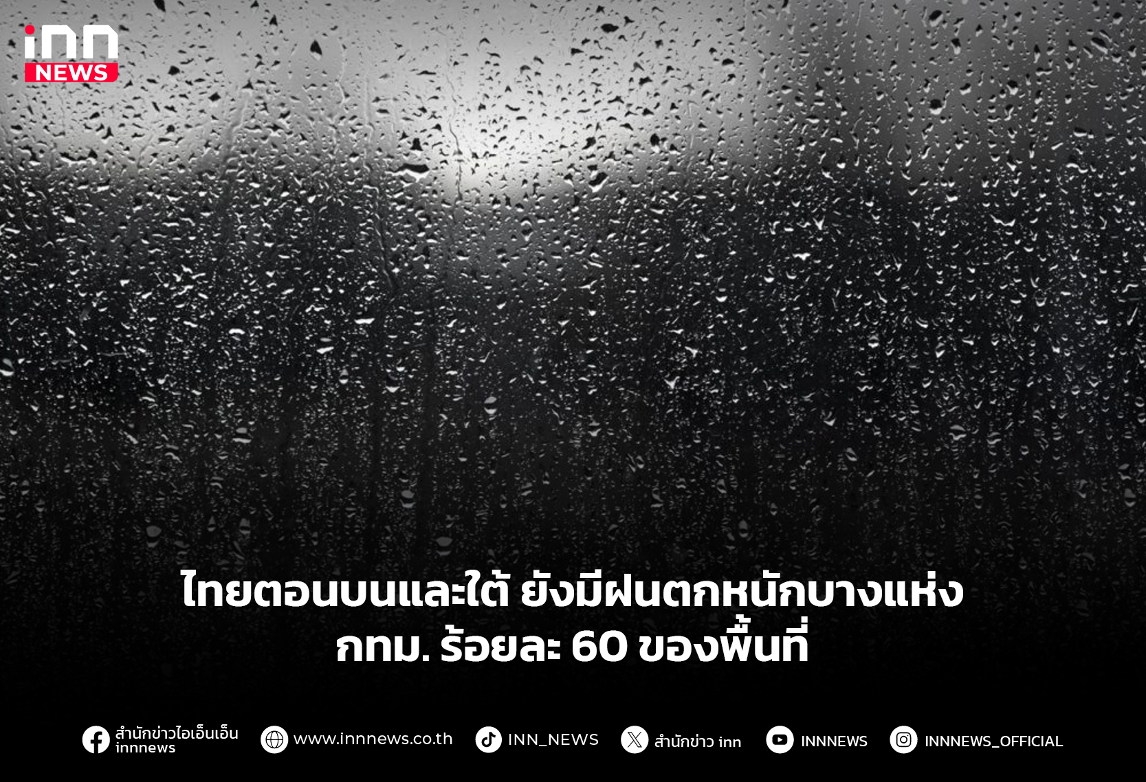 ไทยตอนบนและใต้ยังมีฝนตกหนักบางแห่ง กทม. ร้อยละ 60 ของพื้นที่